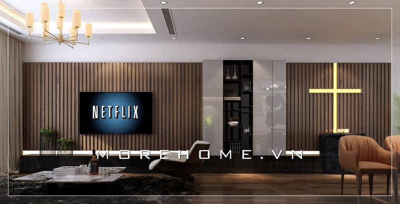 Morehome gợi ý cho bạn mẫu thiết kế nội thất phòng khách chung cư, nhà phố tiện nghi và sang trọng mang phong cách tân cổ điển.