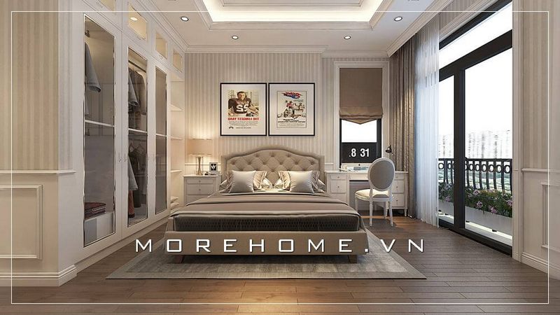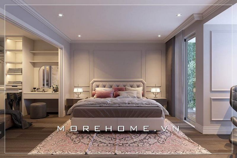 Thi công giường ngủ tân cổ điển cho phòng ngủ master cao cấp