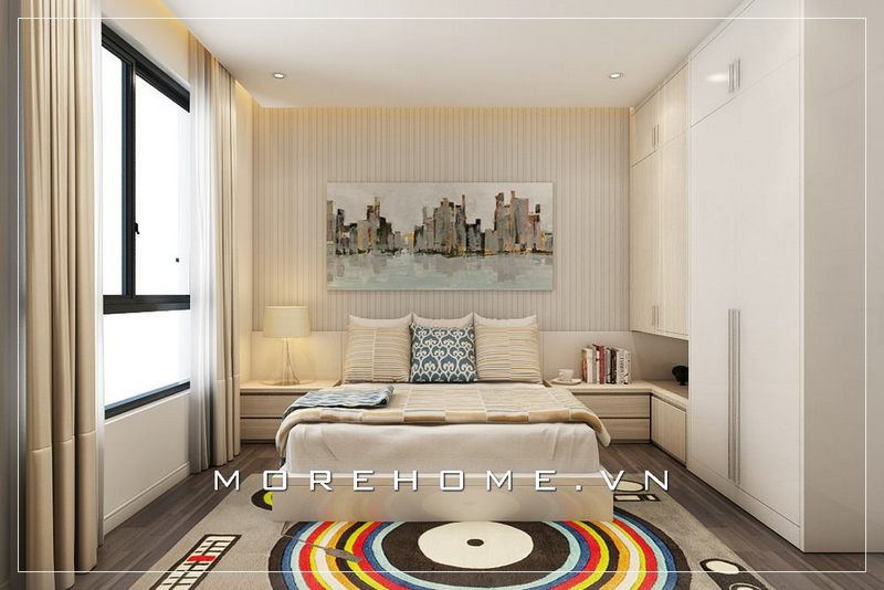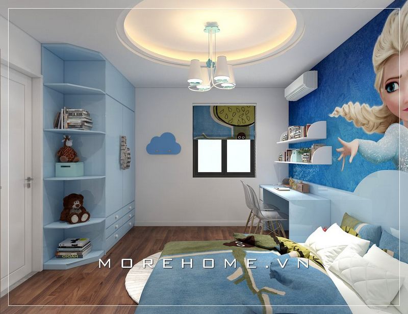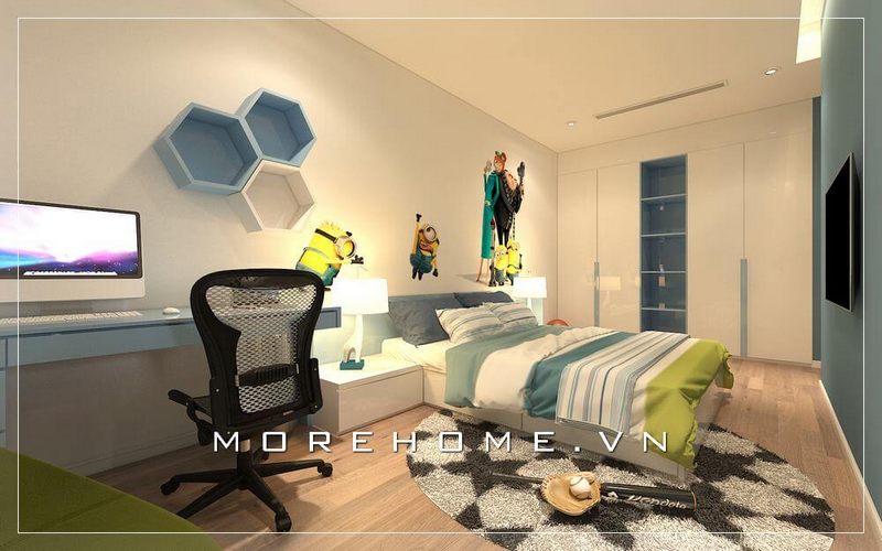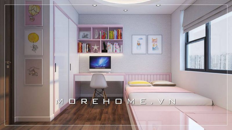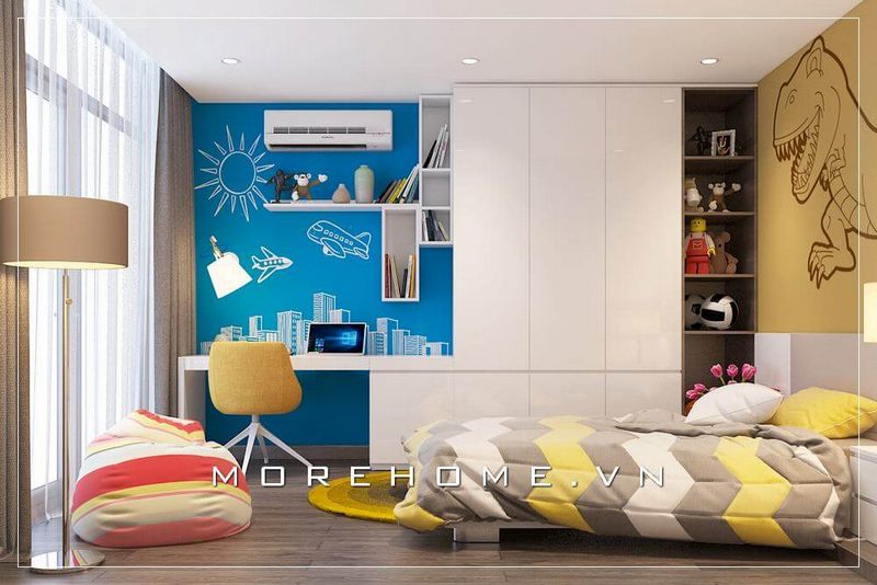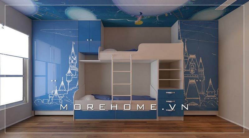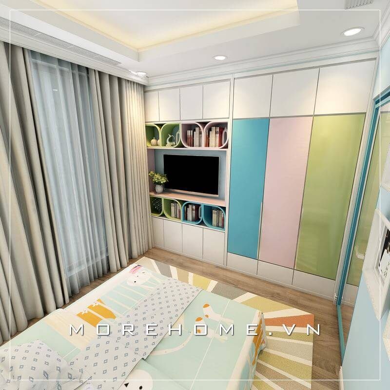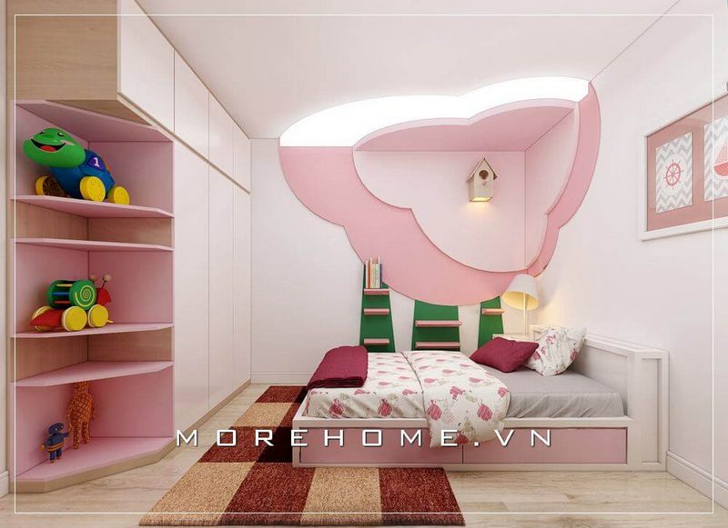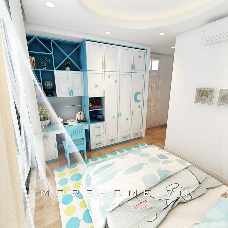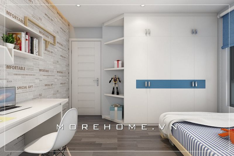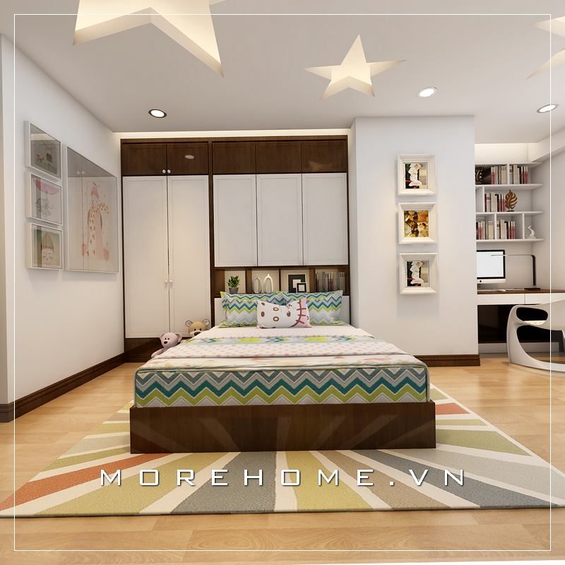 Morehome gợi ý cho bạn mẫu kệ tủ quần áo hiện đại kết hợp tab đầu giường tiện nghi tại phòng ngủ trẻ em
