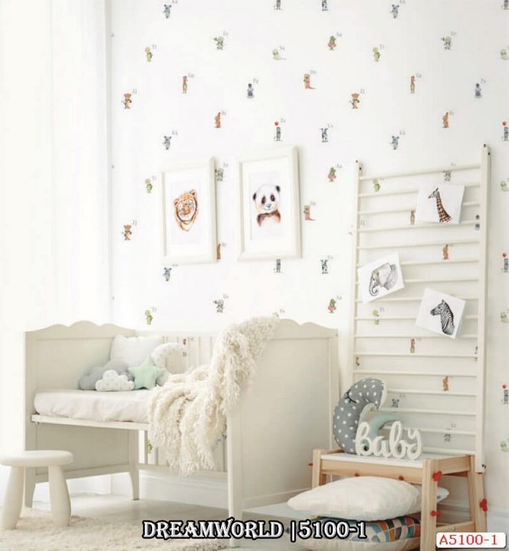 Căn phòng của bé trở nên nhiều màu sắc, sống động hơn với mẫu giấy dán tường màu trắng họa tiết muôn thú này.
