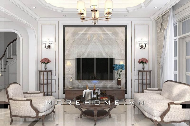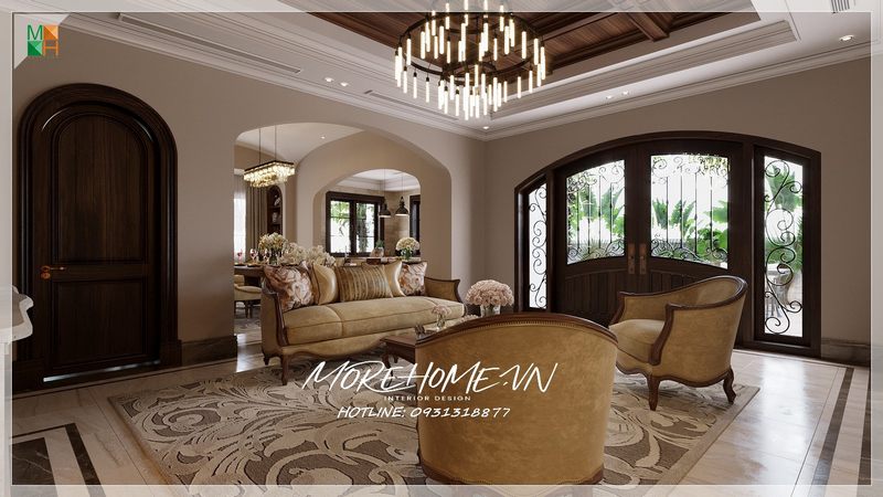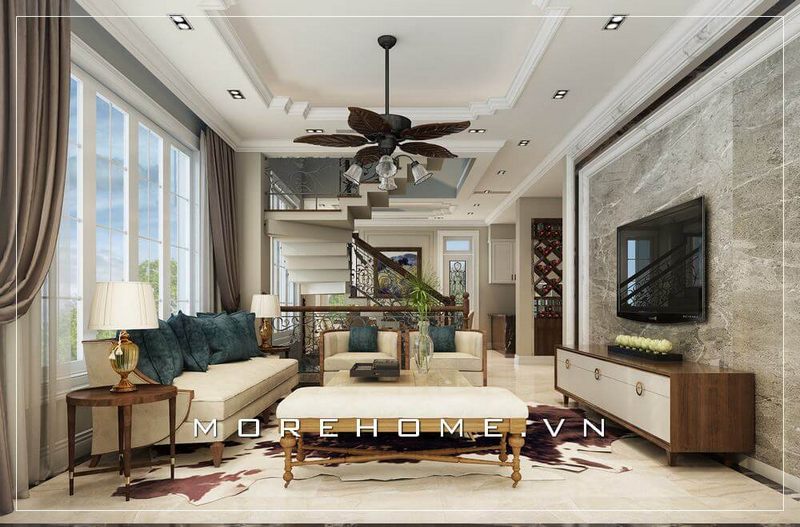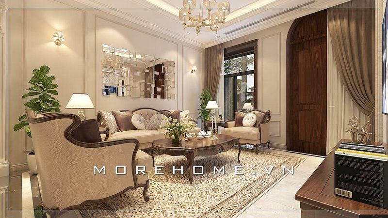 Gây ấn tượng với người nhìn bằng mẫu thiết kế phòng khách biệt thự đẹp sang trọng tinh tế và tiện nghi của Morehome.