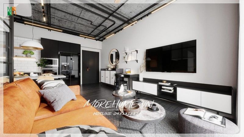 Kệ tủ được bố trí bố cục cân đối phù hợp với diện tích và mục đích sử dụng của chủ nhà. Để tạo nên hiệu ứng tốt nhất, hai màu tương phản đối lập trắng và đen được sử dụng chủ đạo.
