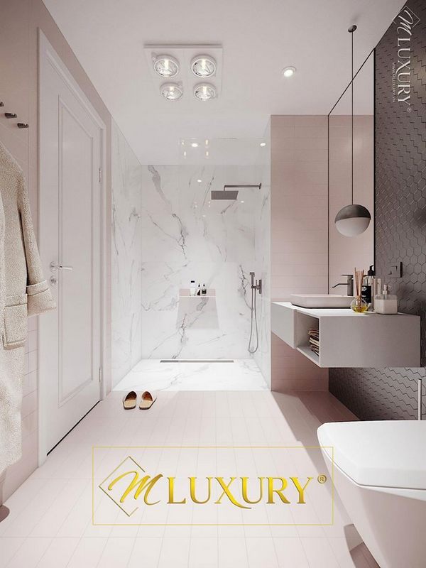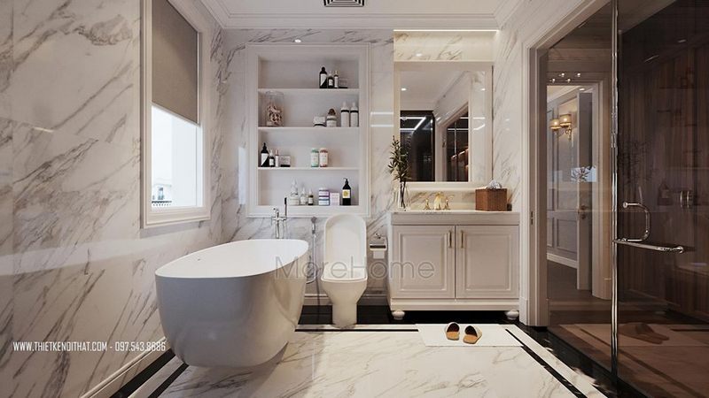 Nội thất phòng tắm hiện đại với màu trắng phù hợp với các căn hộ, nhà phố, biệt thự.