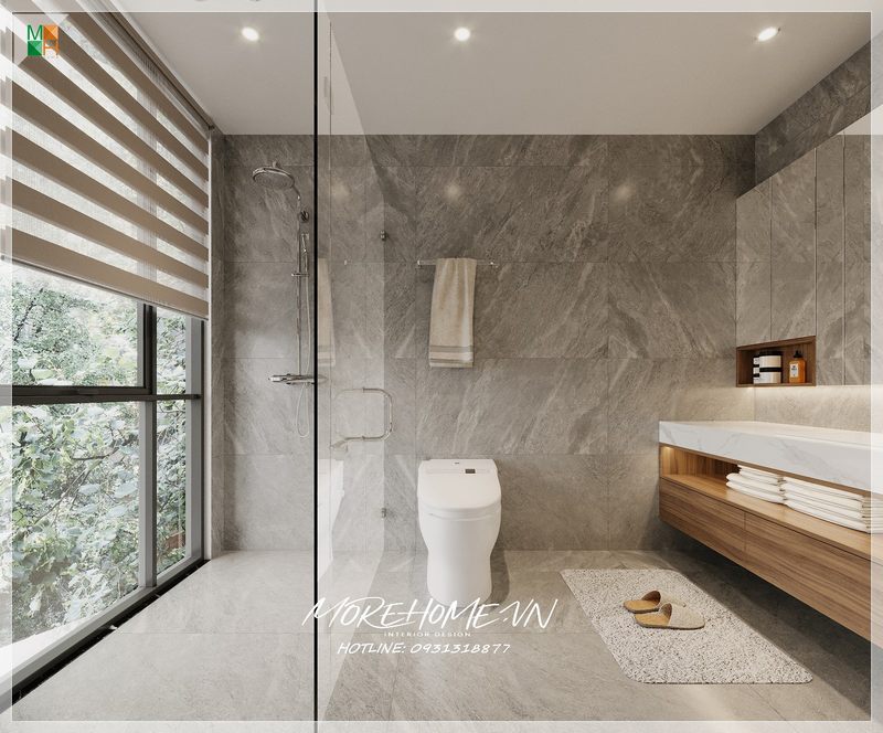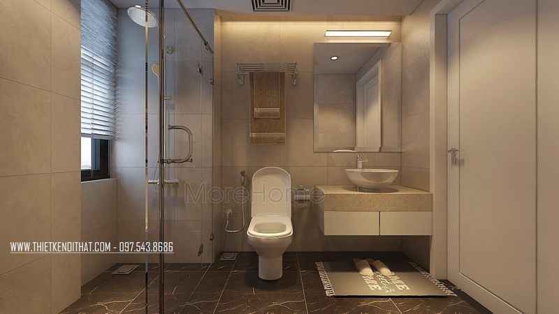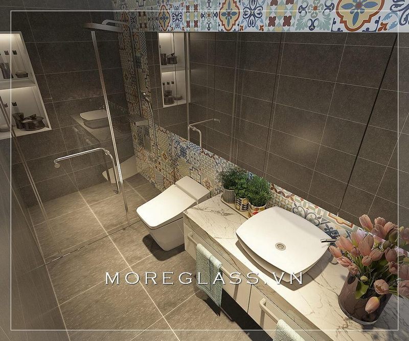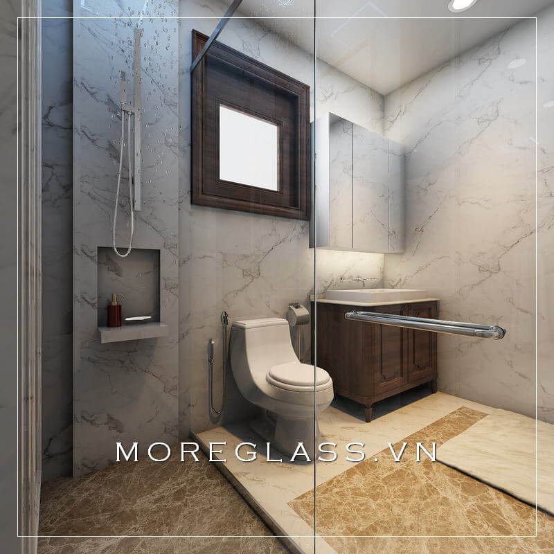 Phòng tắm có thiết kế cửa kính để giúp không gian bên trong luôn khô ráo và thông thoáng, đồng thời hạn chế ẩm ướt do thường xuyên xảy ra.
