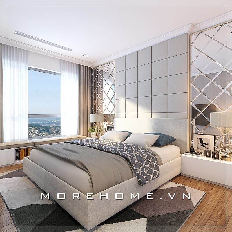 Giường ngủ có khung gỗ công nghiệp chắc chắn, bọc vải màu nhẹ nhàng, tinh tế sẽ giúp gia chủ cảm nhận được sự thư giãn và thoải mái hơn trong mỗi giấc ngủ.
